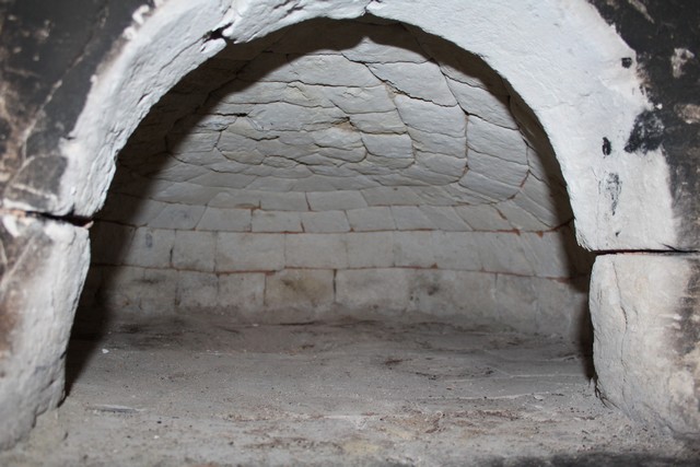 Des pierres taillées forment l’entrée du brasier, la voûte de la chambre de cuisson est en très bon état. La sole est en place. La hotte soutenue par deux corbeaux dont l’un est discrètement sculpté s’ouvre sur la cheminée.